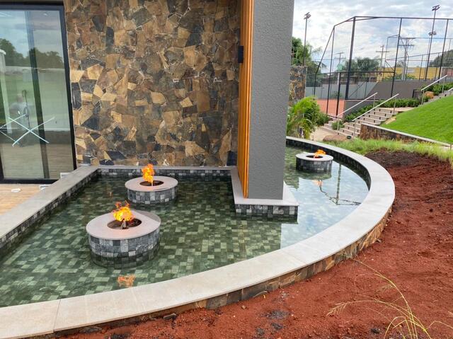 A Linha LFIE é composta por lareiras a gás com pedras vulcânicas.
